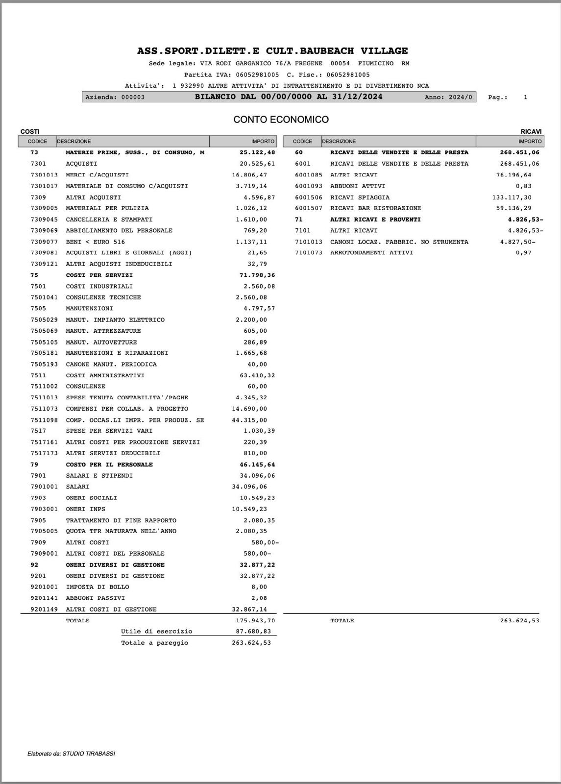 Questo è il Bilancio dell'ultimo anno lavorativo della Associazione. I precedenti sono a disposizione dei Soci presso la sede legale e su richiesta scritta.