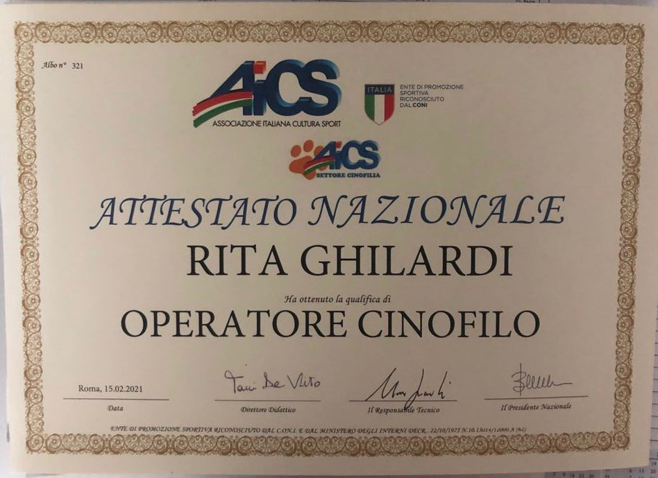 Si appassiona allo studio della Etologia del Cane e si specializza anche in materie riguardanti l’Etologia relazionale, ottenendo il ruolo di Docente nel momento in cui l’Associazione decide di creare un Corso di Formazione interno.